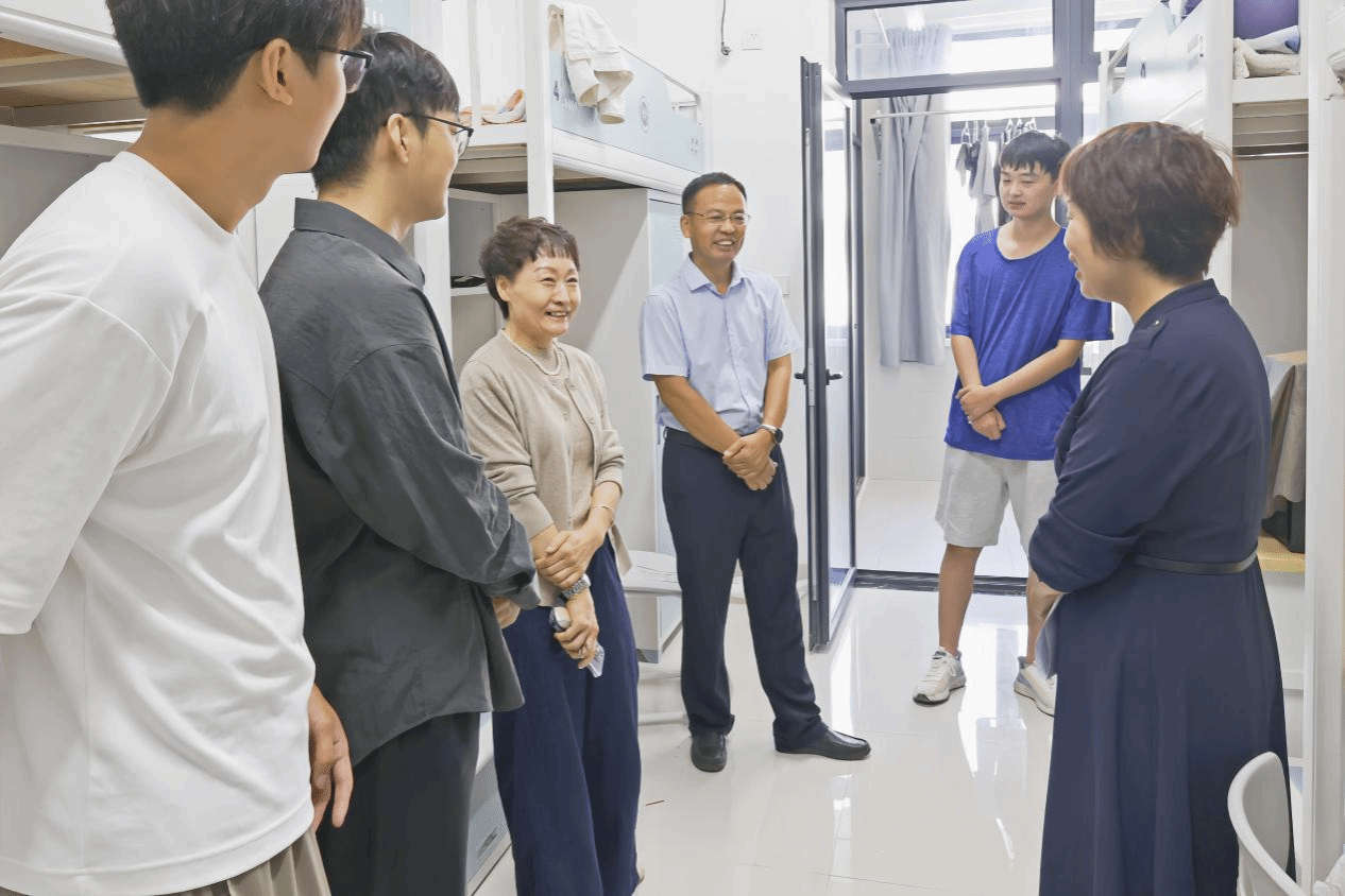 走访过程中,领导班子成员逐一走进新生宿舍,仔细查看宿舍的居住环境、设施配备等情况,与新生及家长亲切交谈。他们耐心询问新生入学后的生活适应、饮食起居及学业规划等问题,细致解答新生关于专业学习、校园生活的疑问,并叮嘱大家要尽快熟悉校园环境,主动融入集体,在遵守校纪校规的同时,互帮互助、共同进步,以饱满的精神状态开启大学生活。