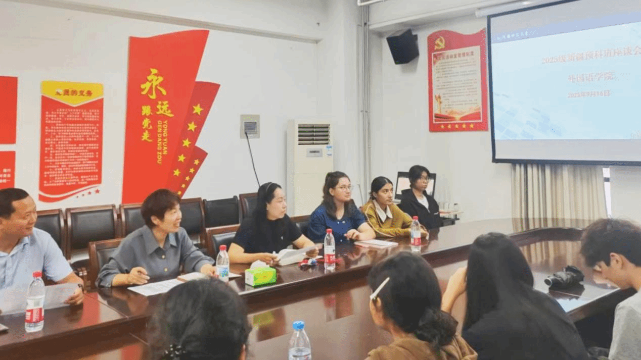 9月16日,外国语学院在文1-502会议室召开2025级预科新生座谈会。学院党委副书记梁莉娟、副院长张丹及预科班教师代表出席会议,与20余名新生亲切交流,助力新生融入大学生活。