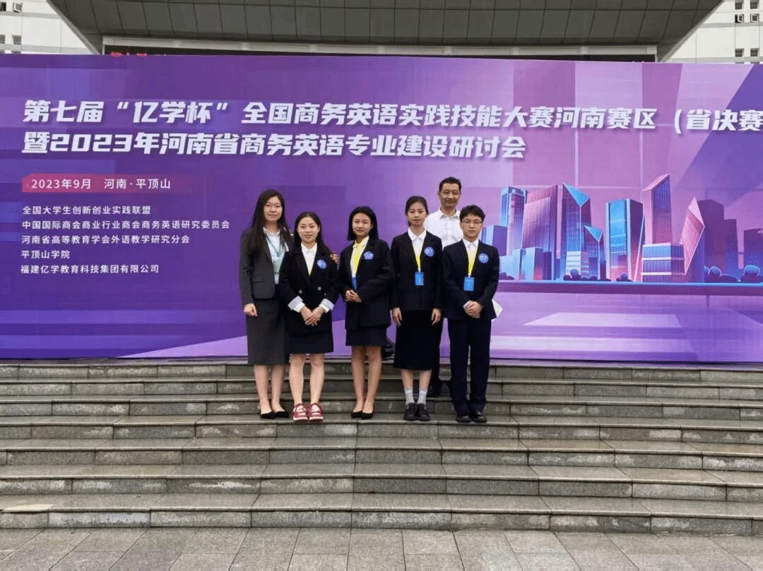学生在各类英语竞赛中表现突出,包括全国大学生英语竞赛、“外研社杯”全国大学生英语辩论赛、全国口译大赛、全国大学生英语演讲比赛、“亿学杯”全国商务英语实践技能大赛、“高教社”杯全国商务英语实践大赛以及河南省“互联网+”大学生创新创业大赛等,屡获佳绩,充分体现了“以赛促学”的教学理念和人才培养成效。